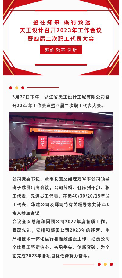 浙江省天正設計工程有限公司召開2023年工作會議暨四屆二次職工代表大會